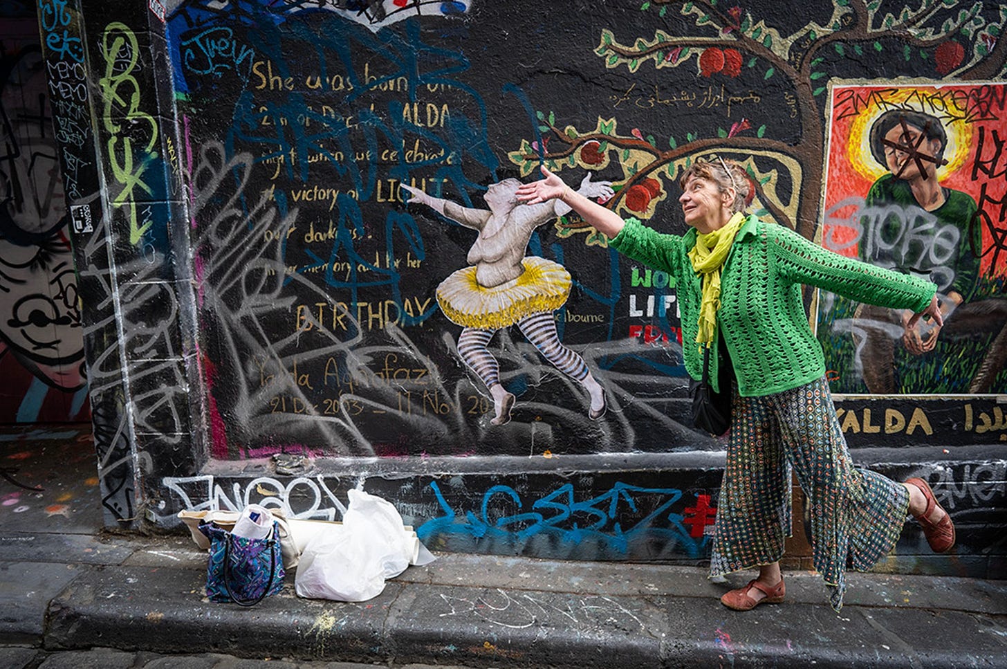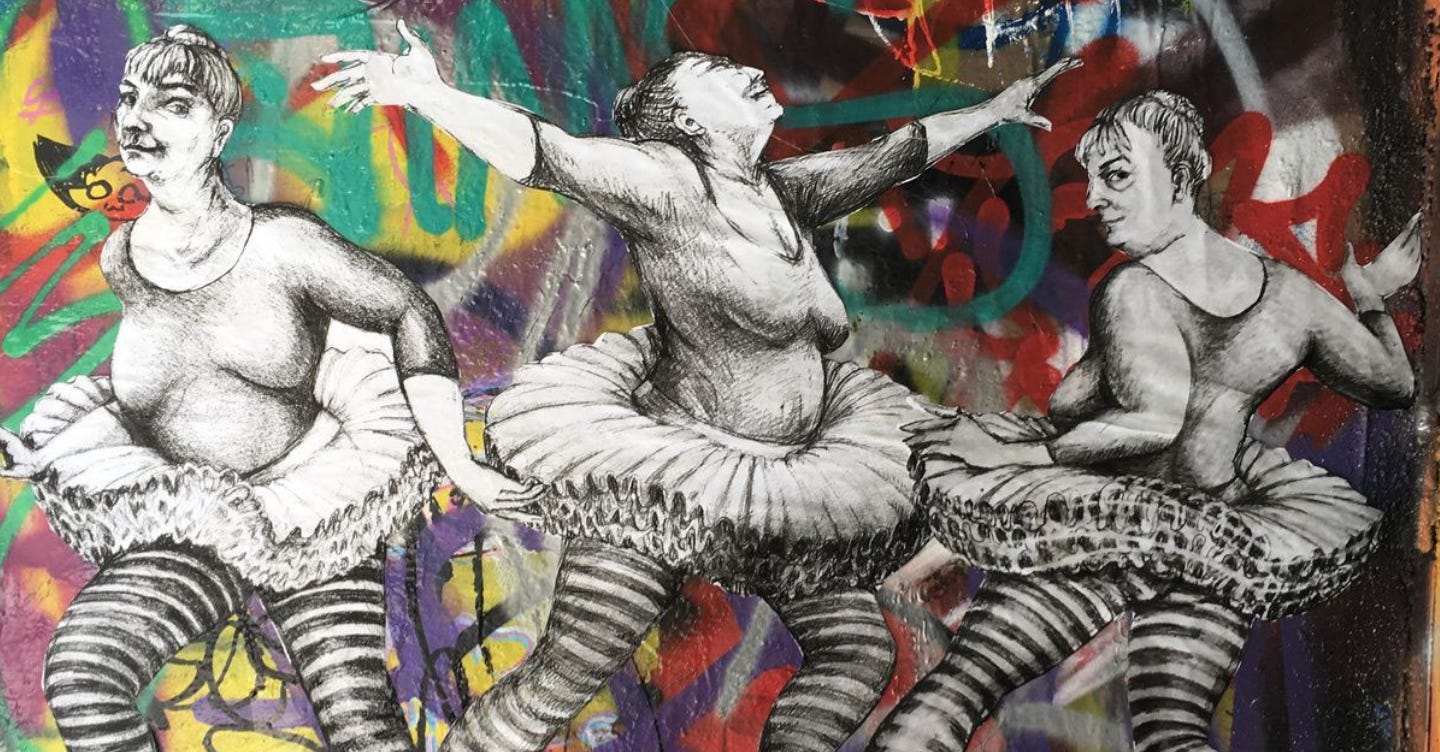 A 75-year-old lesbian in the study writes about being in a meeting, being ignored and then watching a younger person say exactly the same thing and get full credit for it. I think this is what the artist, Deborah Wood’s street art captures; the utter rage at being under-utilized, under-seen, under-acknowledged in places where we once commanded attention and access. There is a loss. And then in contrast, with her dancing ladies in tutus, being free and open and not apologizing for taking up space.