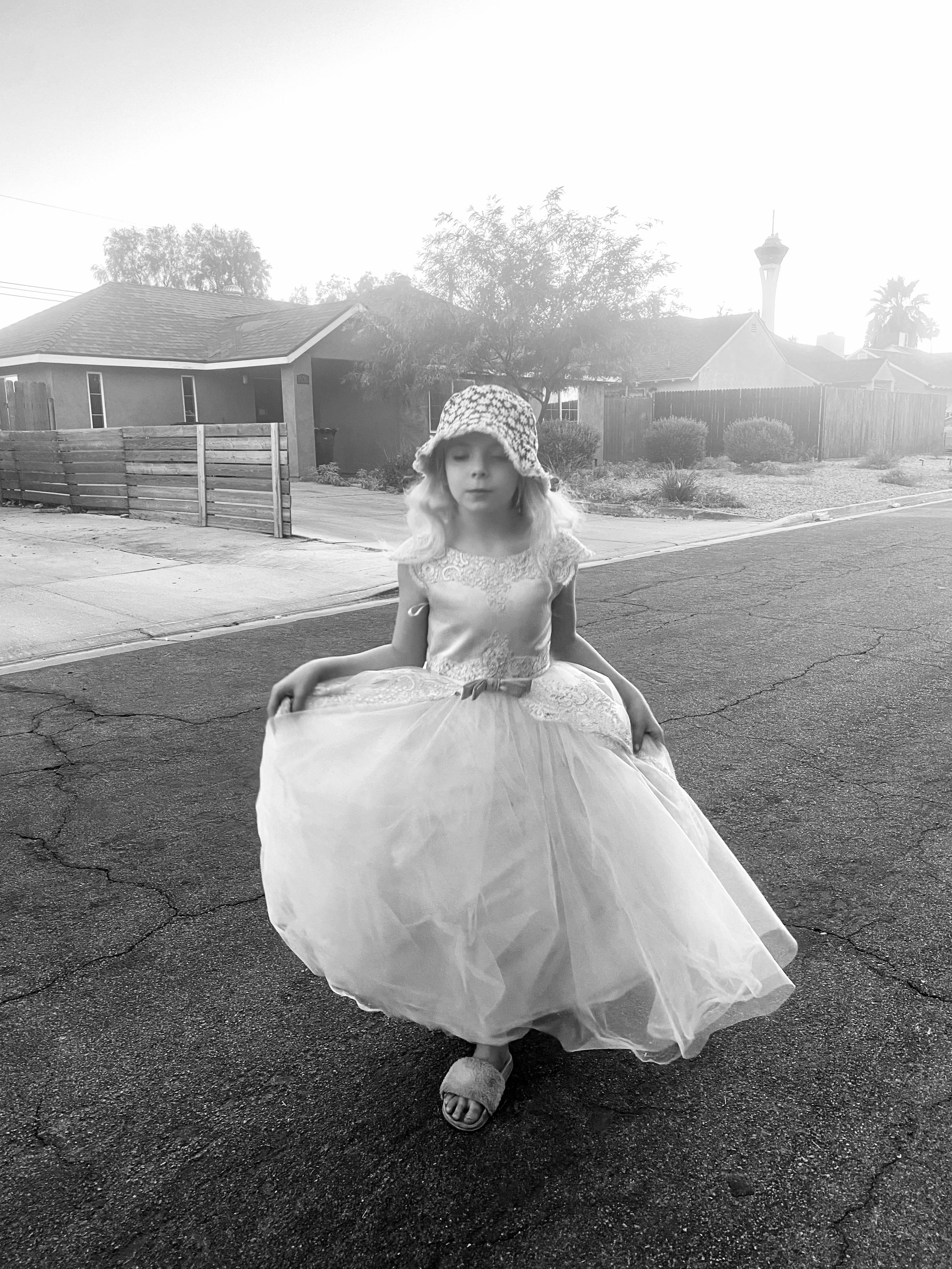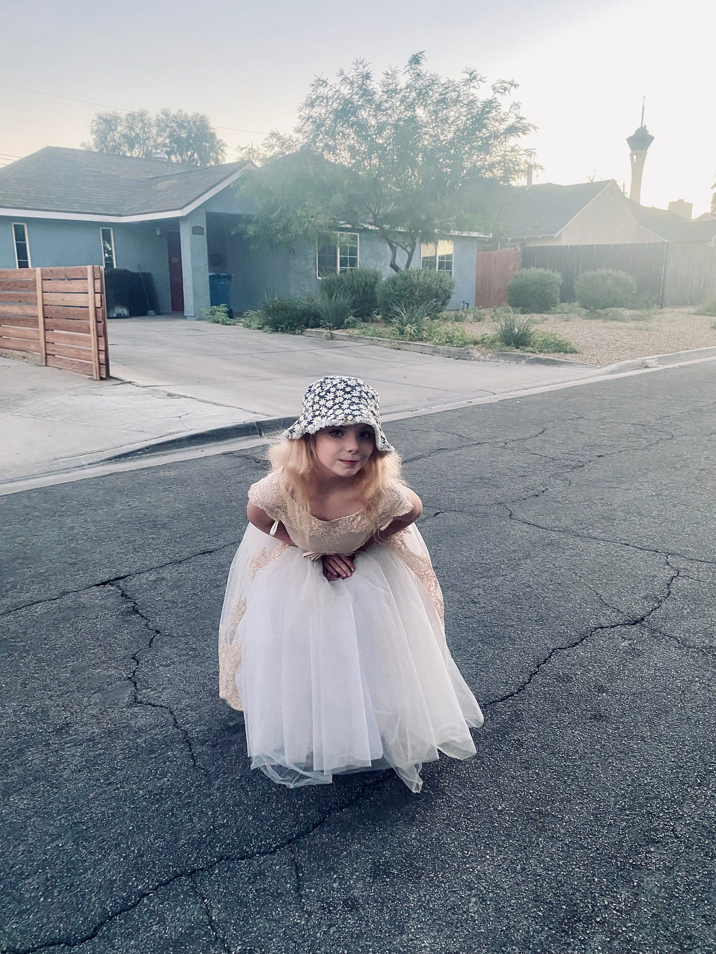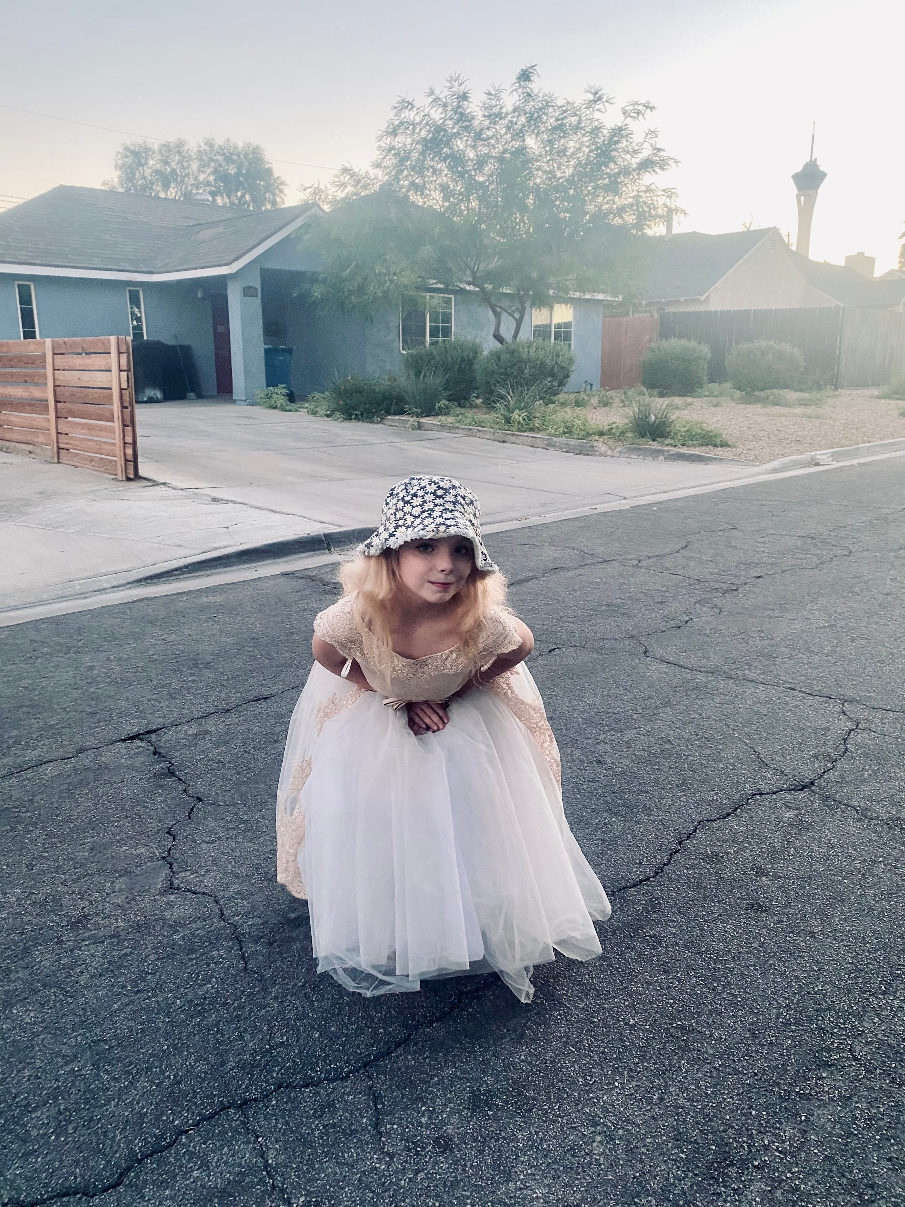 She is mewling like a kitten and jumping on the bed on all fours. She will communicate like this for the better part of the evening. Earlier in the day, I was sitting out in the front yard, taking in the sun, while Desi and her older brother Raffi (12) rode scooters through the neighborhood. The boy she wanted to play with said he would come in “5 minutes” but he never came and she stomped her feet and asked me 100 times to go down to his house and get him and make him come play.
