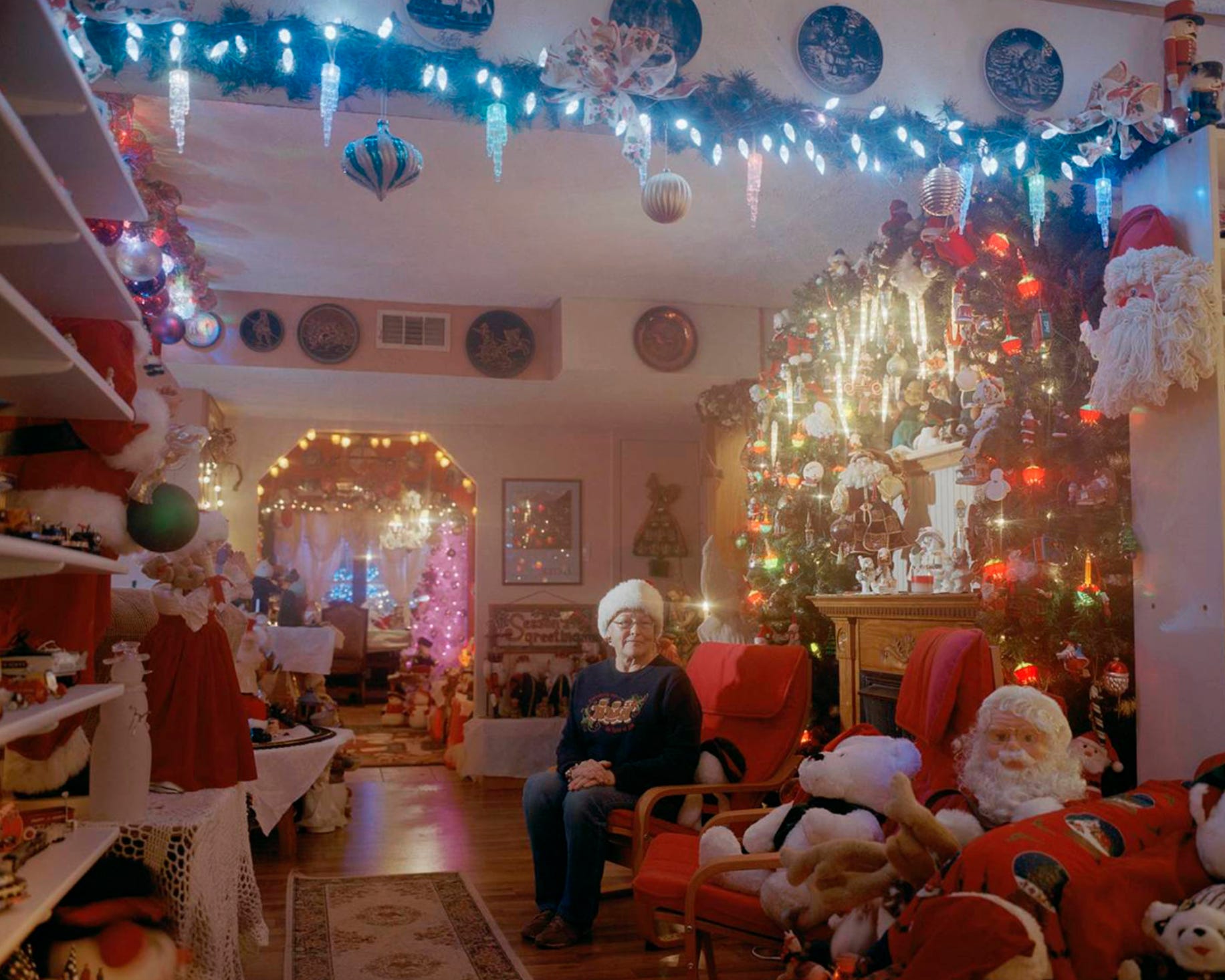 Once a year, I came home from school and the house unexpectedly, without word, transformed into a Christmas wonderland. She took all the knick knacks and encyclopedias off this big wall of shelves surrounding the wood stove, dragged cardboard boxes up from the cellar and filled the house with fake boughs, jolly little Santas and sleighs pulling reindeer. Every year, she added a few more items to her collection, a couple of elves, a robotic Mrs. Claus that played music and rang a bell, a crushed velvet Rudolph with a nose that lit up. Every year the decorations would disappear on January 2nd, same time, same process, neatly packed away in storage, when I was in school. To me, the whole holiday felt expansive and effortless, efficient and comfortingly the same.