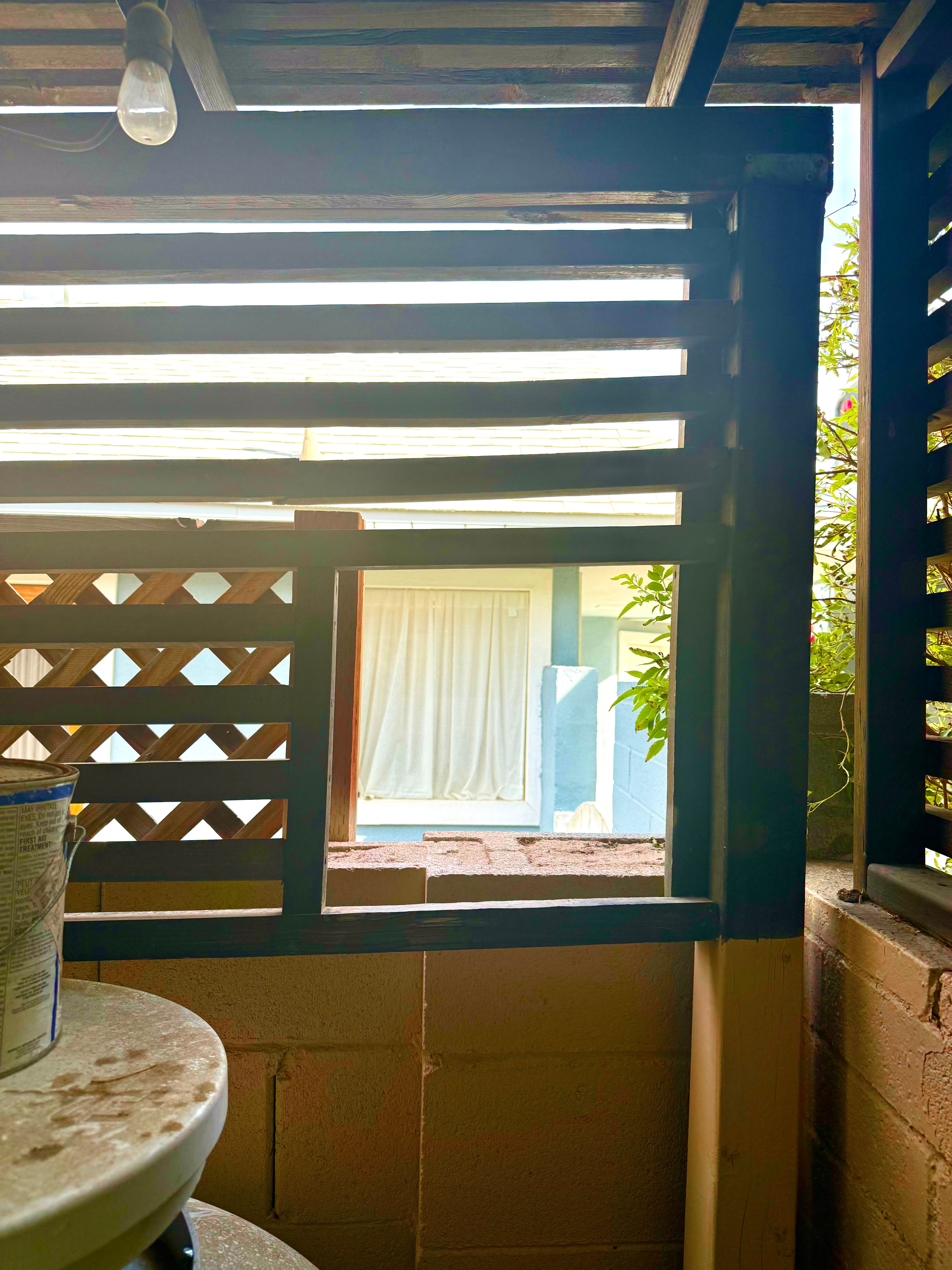 Our relationship shifted ever so slightly after Kim died. I didn’t feel like I was pulling him away from something anymore. T had a full life of work and child raising and school. He was always up to meet me at the pass, a small square window cut into the slats for the community cats. Huntridge loves its feral, and outdoor cats. Lots of neighbors put out food, water and shelter for them. The Pass was designed so the cats could walk the walls, come in and out, hide in the vines, move around the neighborhood. In the summer, I put out cold water and ice packs. Our walls don’t just make good neighbors, they make a highway system and refuge for the night time prowlers and the day time nappers.
